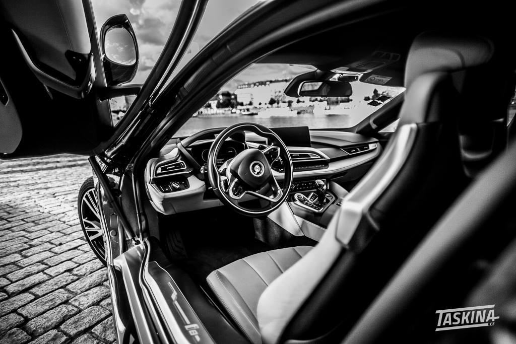 Když se z takové projížďky vrátíte, začnete brzy zpochybňovat i některé další volby vývojářů tohoto stroje. Jako třeba dveře. Zatímco u ostatních aut s „nestandardním“ otevíráním dveří se dveře otevírají nikoliv do stran, ale spíše nahoru, aby se ušetřil prostor kolem auta. Dveře i8 však nezasahují do střechy. Otevírají se tak přímo do stran. Skoro jako by někdo nejdřív navrhnul a postavil auto, a až poté usoudil, že by ho chtěl mít futurističtější a víc cool, takže objednal kit na „Lambo doors“, jaký používají tuneři. Proč to byl špatný nápad, to zjistíte ve chvíli, kde zaparkujete ve standardním parkovacím místě mezi dvěma auty. Může se vám totiž stát, že prostě nevylezete a budete muset potupně odjet.