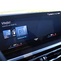 Uvnitř mě přivítala, pro mě již dobře známá, širokoúhlá palubní televize. Snad už jsme si to vyříkali u M340d. Vážně rychle si na ní zvyknete a pokud řídíte, stejně mnoho času na její kritiku nenajdete. Má hezky čitelnou grafiku, okamžitou odezvu, mobil připojí, prostě funguje správně. Také zde nabízí dvě nové, dříve neviděné funkce. Chcete nejdřív dobrou nebo špatnou zprávu? Pojetí dobra a zla je relativní, ale znáte z animáků scénku, kde se postavička rozhoduje, co má udělat a z ramen jí střídavě našeptává andílek a ďáblík?