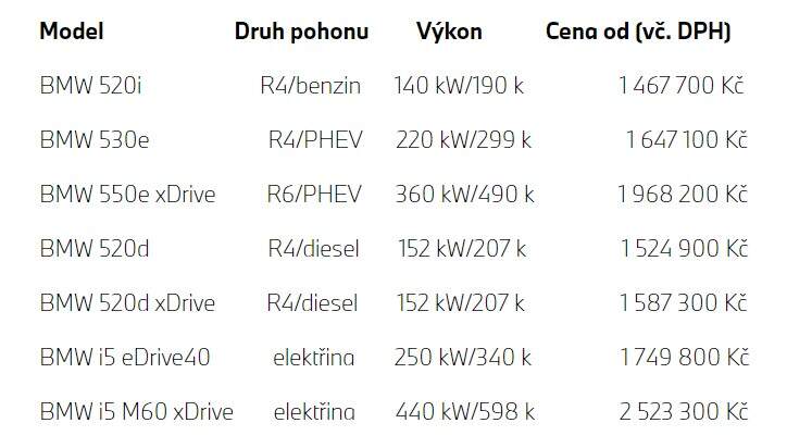 Tím ovšem nabídka rozhodně nekončí. Nadále v ní zůstává klasický benzín v podobě čtyřválcového 520i, na jaře se přidá naftový šestiválec spolu se dvěma plug-in hybridy 530e a 550e (s elektrickým dojezdem od 79 do 101 kilometrů dle wltp), na podzim příštího roku se pak můžeme těšit i na M5 s osmiválcem zapojeným do plug-in hybridního ústrojí, známého z bestiálního XM . Pětka má zkrátka řešení pro jakýkoliv způsob využití a jakýkoliv životní styl.