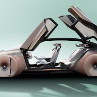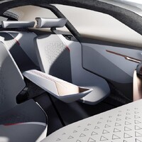 Přehlídka nepřirozeně se pohybujících věcí pokračuje v interiéru. Pod čtveřicí křídlových dveří se skrývají čtyři bílé, skořepiny-připomínající sesle a před řidičovým místem ještě prapodivný, skládací volant. Jeho pozice je závislá na tom, který z jízdních módů je zvolen. Na jedné straně je zde režim Ease, kdy vůz funguje autonomně, volant je složen v palubce jako origami a sedadla posádky jsou otočena proti sobě. BMW se však i v budoucnu chystá nabídnout možnost řídit vozidlo vlastními silami a od toho je tady režim Boost. Volant se poskládá do tvaru nudle s dvojicí madel na koncích, řidič už sedí po směru jízdy a interiér je tak plně přetransformován pro potřeby šoférování.