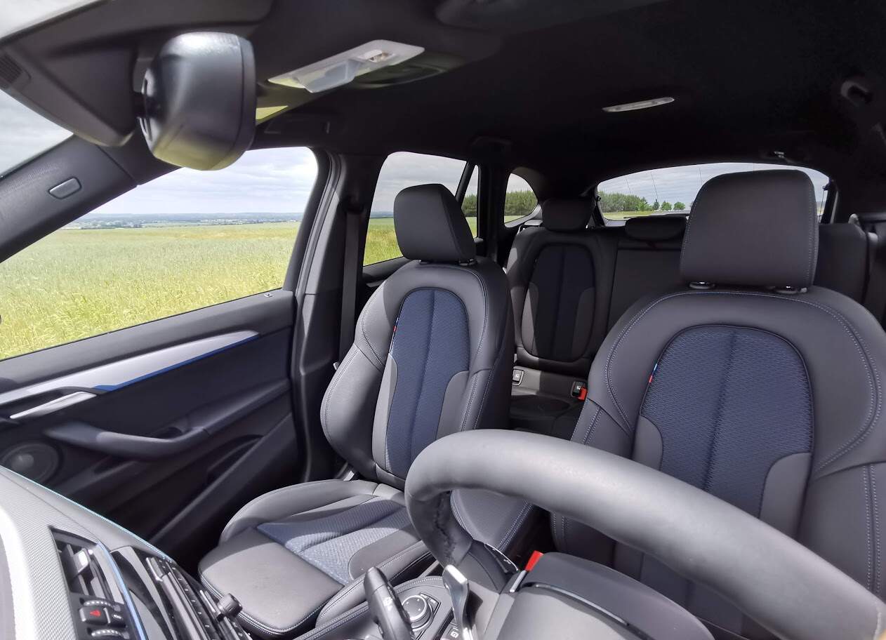 Interiér vozu je tak tiché a klidné místo, kde se sice nekonají žádné buržoazní výstřelky jako mnohobarevná kůže, nebo snad dřevěné obložení, ale všechno tu funguje, drží pohromadě, nevrže a je tak akorát po ruce. O filigránských budících v malých BMW se pravidelně rozepisuje kolega Jeník, takže vás tím již nebudu zatěžovat. Sportovní verze sedadel s modrým prošíváním mi sice v rodinném SUV příliš smyslu nedávají, ale sedí se na nich docela hezky, tak vlastně proč ne. Akorát ve velkých vedrech příliš nevětrají, vlivem bočnic se celá záda připlácnou na tkaninu, ale to řeší výkonná klimatizace.