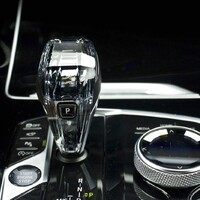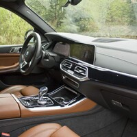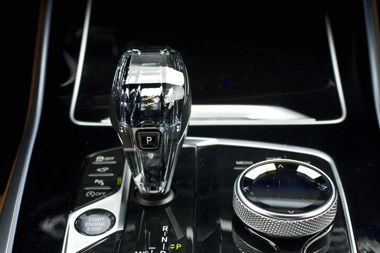 Radostná zpráva je, že prostorová výraznost není zřejmá jen zvenčí, ale také zevnitř. Středová loketní opěrka má rozměr fotbalového hřiště, spolujezdcových končetin se tedy dotýkat můžete, ale nemusíte, což je vítaná možnost volby. Chvilku se zastavím u sousoší řadicí páky a ovladače radiomapy s hromadou tlačítek. Snad každá funkce má své vlastní, a jakkoli to na první pohled vypadá přetlačítkovaně, všechna jsou ospravedlněna logikou rozmístění i uživatelskou přívětivostí. Máme tu jízdní režimy, vypínání start-stop, terénní funkce a samozřejmě klasické čudlíky okolo kolečka iDrive. Novinkou jsou příplatkové skleněné artefakty, o kterých tak úplně nevím, co si myslet. Na používání nejsou ani lepší, ani horší než ‚obyčejná‘ plastová varianta, ovšem dojem markantně jiný je, pochopitelně. Na můj vkus možná až příliš vyumělkovaný. Interiér jako celek to snese, protože má elegantní, ale střízlivý design bez zbytečných kudrlinek, ale přece jen bych nakonec sáhla po klasice, asi hlavně proto, že skleněný kruhový volič iDrive (psát po něm prstíkem samozřejmě lze) je neustále zapatlaný. Za řadicí pákou se najde místo ještě na dva cupholdery s milou funkcí vyhřívání či chlazení a bezdrátovou nabíječku.
