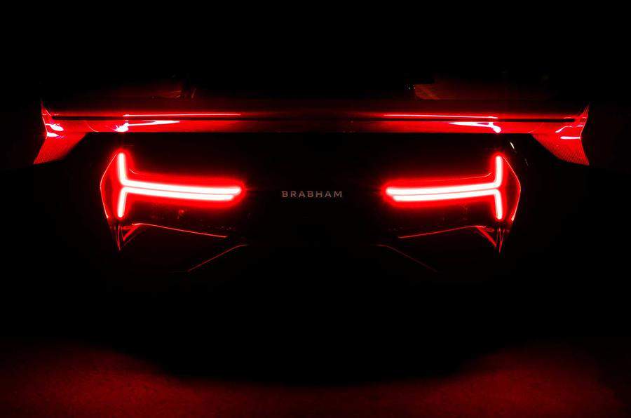 Jak první obrázek napovídá, dost podstatným prvkem nového Brabhamu je křídlo. Jakože opravdu velké křídlo, sahající svou šířku přes kontury karoserie. Dále ze tmy vystupují LED diodová světla a také cosi, co vypadá na obří difuzor.