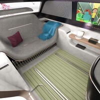 Posádka uvnitř se cítila doslova jako v pokojíčku. Přední sedačky ještě vypadaly víceméně normálně, ale vzadu vznikl útulný salonek s měkce polstrovanými lenoškami a stěnami potaženými plyšem. Pro působivý celkový dojem bychom autu jistě odpustili pár ergonomických nesrovnalostí, například fakt, že budíky byly od volantu tak daleko, že na ně nemohlo být vidět. Také rádio a další ovládací prvky po levé straně na místě řidičových dveří se nejspíš neobsluhovaly moc snadno. Zato se do kabiny vešlo surfařské prkno.