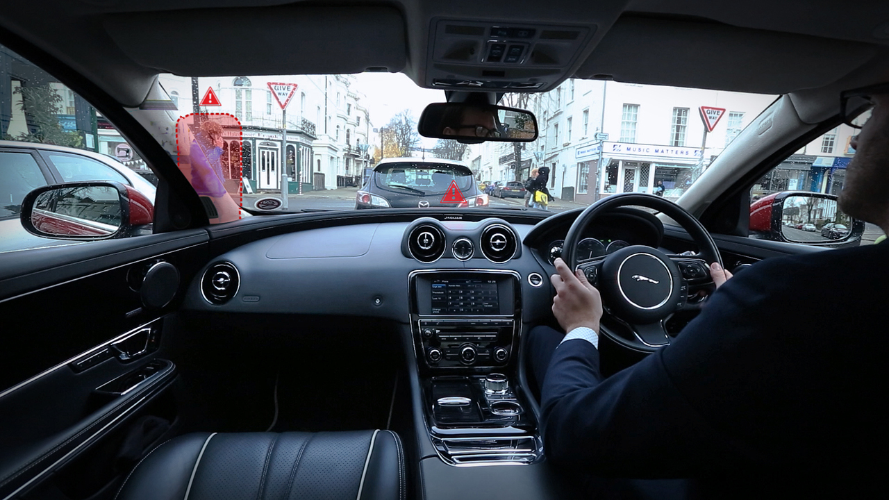 Další fičurou, s kterou Jaguar přichází, je "vylepšený" Head-Up Display. Navigace podle hlasu či půdorysu mapky se stane přežitkem, protože jet za "ghost" autem – siluetou promítanou před vás, jež pojede tou správnou cestou – bude jistě přijemnější.