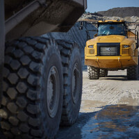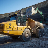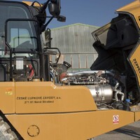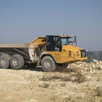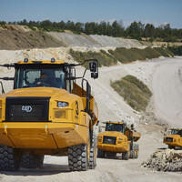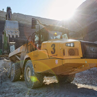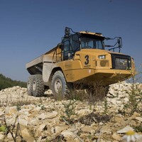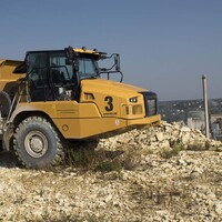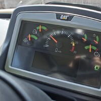 Cat 725 jsme na pozvání společnosti Zeppelin CZ měli možnost vyzkoušet na proslulém offroadovém ČLUZ-Ringu *), kde není nouze o rozmanité terénní nástrahy, ať už jde o štěrk, jíl, bláto či terénní zlomy. Třínápravový kolos si bez potíží poradil i s úseky, na nichž se nemálo zadýchávaly i pásové bagry. Pro jízdu mimo zpevněnou vozovku je Cat 725 prvotřídně vybaven nápravovými i mezinápravovými uzávěrami diferenciálů, které aktivně zapíná prostřednictvím terénního systému AATC monitorujícího jak zrychlení, tak svahy a náklony. Asistent stability dává řidiči zvukové a vizuální upozornění, pokud se vozidlo přiblíží nebezpečnému úhlu. Rychlost při sjezdu ze svahu pak reguluje plně automatický retardér, nechybí ani asistent pro rozjezd do kopce.