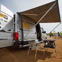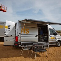 Zajímavá byla též ukázka mobilního servisu firmy Zeppelin v podobě dvou dodávek. Ta první s integrovanou dílenskou vestavbou zahrnuje veškeré nářadí, které servisní technik potřebuje v místě stroje, aby jej opravil, a nebylo třeba těžký a neforemný stroj převážet do Modletic na centrálu kvůli závadě. Ta druhá už je přeci jen trochu zajímavější, neboť se jedná o vůz pro olejový servis, ve kterém je čerpadlo, vysokotlaké hadice a několik set litrů oleje pro jednoduchou výměnu motorového či hydraulického oleje v místě práce stroje.