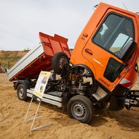 Zblízka jsem si prohlédl též sklápěcí Zebru. Česká automobilka Zebra vyrábí multifunkční vozidlo Zebra, které je možné osadit širokou nabídkou příslušenství – zjednodušeně by se dalo říci, že jde o multikáru současnosti, ale to by byla urážka Zebry. Poctivě vyrobené vozidlo osazené čtyřválcovým motorem CAT je totiž na úplně jiné úrovni použitelnosti, nabídne pohon 4x4 s uzávěrkami, ale hlavně je jednoduše opravitelné – vše se ovládá pokud možno mechanicky, nejen plyn, ale i čtyřkolka. Zebra též nabízí elektrickou verzi, kdy baterie je usazená pod rámem, takže není problém baterii vyměnit za jinou bez nutnosti dlouhého dobíjení během služby. Baterie má zhruba 70 kWh a umožňuje nabíjení AC rychlostí až 22 kW.