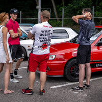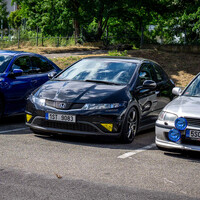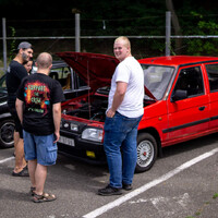 Pak se postupně slezla squadra azura motoristické journalistiky v Krči a okolí, (My ten konkurenční boj s Garáží naschvál trochu hrajeme, ale naživo se máme i docela rádi. A to, že řiditel Garáže a náš bývalý kolega Dominik dorazil na tříkolém mopedu bylo vyloženě poetické.) začali jsme kafrat a voblejzat přítomné. Našli jsme třeba veselého mechanika s Golfem VR6, který se mile přiznal, že to má na to, aby si tak hezky šruboval… Vedle přistála potuněná Fabia Promiň, pak brouk…