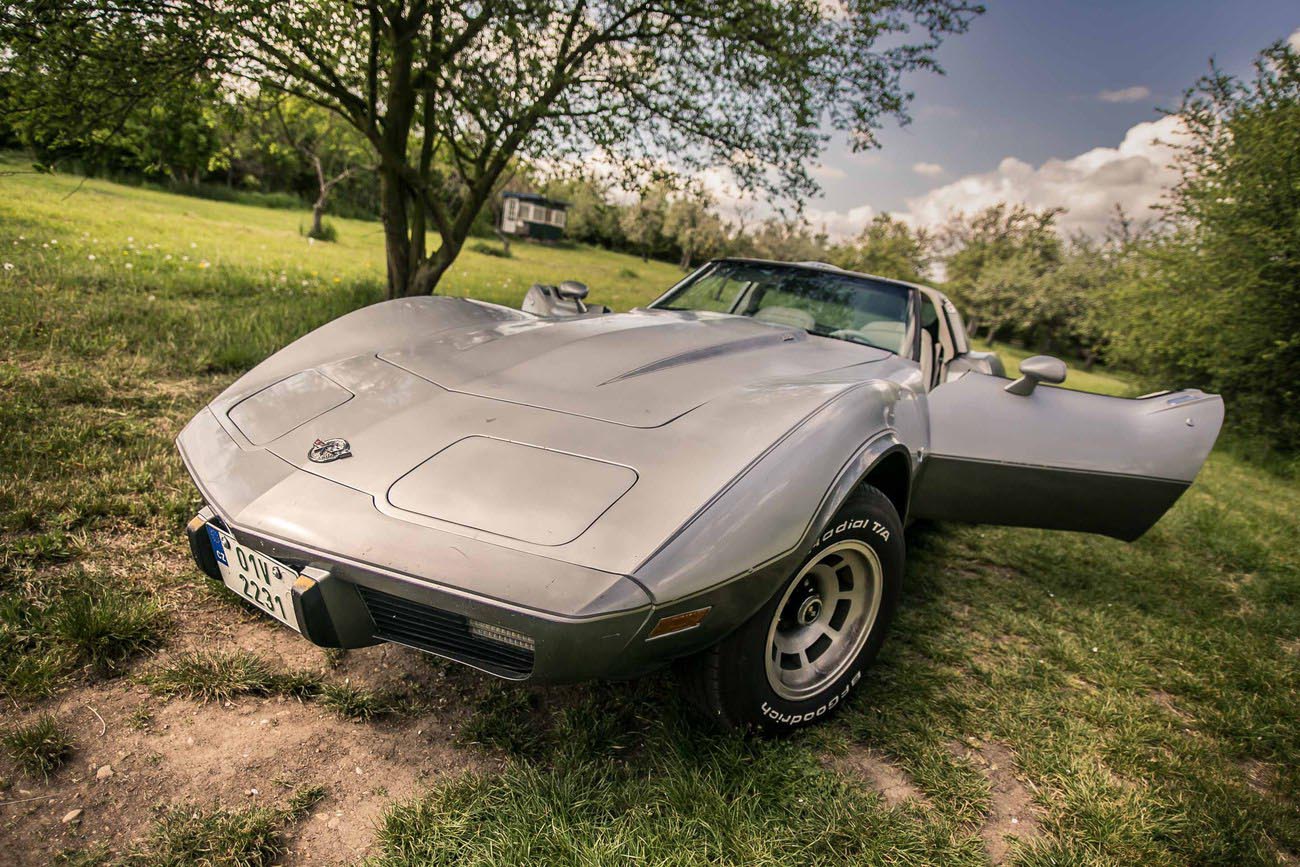 Příběh imigrace tohoto konkrétního kusu tak nějak odráží éru jeho vzniku. Můj šéf před léty sháněl náhradu Porsche 944 a porozhlížel se po Boxsteru. Poté, co jsem jej veřejně nařknul z té nejmilejší sexuální orientace a ukázal mu nádherné tvary právě třetí generace corvette, pochopil, že tento pozérský plastový nesmysl bude asi lepší variantou. Naprosto nekompromisně jsem mu zakázal automat, který už tak tragické výkony udušených motorů zcela zabíjí a začali jsme hledat nějaký zachovalý kus ideálně v motorizaci L82, která má těch ořů alespoň 220. Nalezli jsme. No a tady je. Má sice velké zadní okno a "tlustý zadek" (ve srovnání s roky 68-71), ale je to pořád placatý přízrak, který se ničemu nepodobá a na příplatkových širokých kolech má naprosto úžasný postoj.