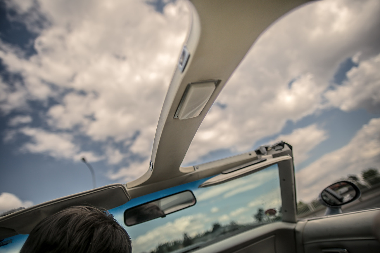 Nepotřebnost jsem si vyzvedl v garáži a hned po nastartování si uvědomil, jak se změní vnímání hlasitosti auta v případě, že dlouhodobě absentujete na srazech US cars. Hned po probuzení se rozlehlo brblání vysokého volnoběhu studeného osmiválce bez laděných svodů. Tento technický detail je zcela esenciální, protože čím horší svody, tím více bublání. A bublání je dobré, protože připomíná Tatru 613 a to je první osmiválec, který jsem v životě slyšel a… Proč o tom mluvím, že. Vytáhl jsem to na projížďku noční prahou a hned ze startu si připadal jako trpaslík. Sedíte hodně nízko, jak se má, ale díky vysokému osmiválci a rozmáchlým křivkám máte před sebou vysokou palubku a dlouhou kapotu, sedí se totiž těsně před zadní nápravou. A sedadla nelze polohovat výškově. Odklon opěradla se dokonce reguluje šrouby. Ale díky tomu jej nemusíte nastavovat po každém sklopení, což by byla Škoda. Ne nadarmo jsou boční okna tak vykouslá. Celá kabina působí jako z letadla, dva velké ciferníky s rychlostí a otáčkami a na středové konzole několikero roztomilých budíčků s třepajícími se ručičkami jako v letadle. Dá se na ně třeba i poklepat a zjistit, že fungují správně a benzínu je skutečně zase málo.