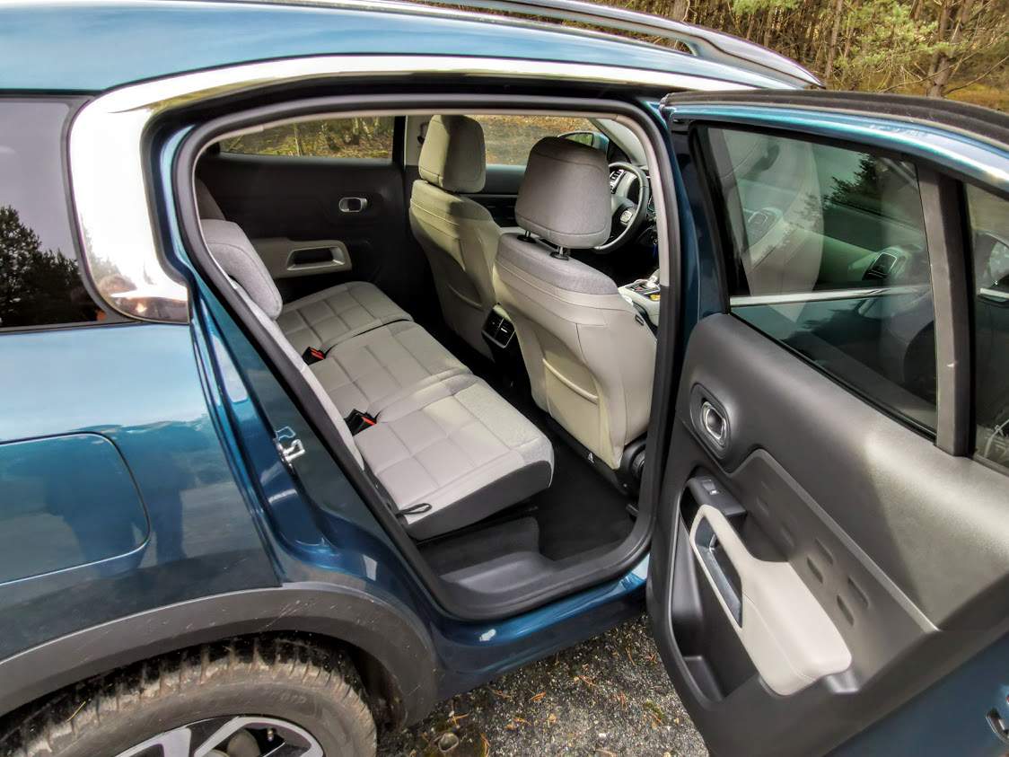 Jen mi tam vadí ty tři stejně široké sedačky vzadu - jako dospělý člověk jste na krajních sedadlech rameny a hlavou prostě moc blízko C sloupku, není to příjemné (stejně jako spona od pásu zařezávající se do pozadí. Stejně široké sedačky jsou totiž spíš stejně úzké. Ale to není chyba C5, to je vlastnost koncepce). Pro děti pak chybí už zmíněný Isofix uprostřed (což už chyba C5 je).