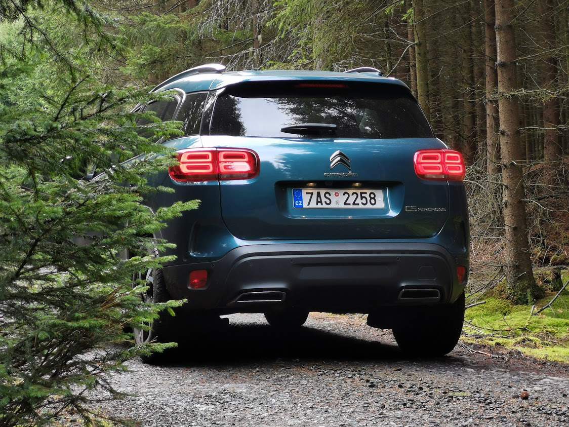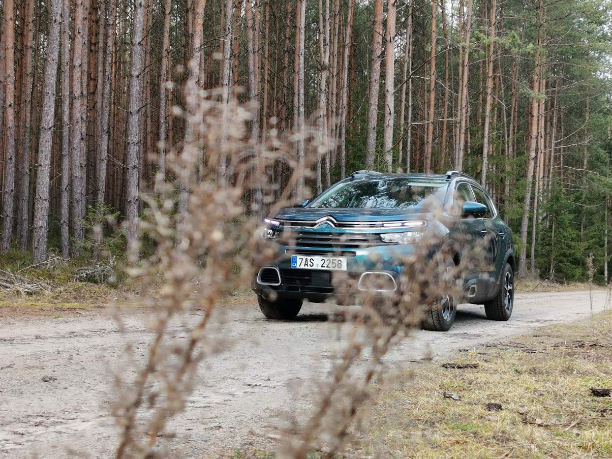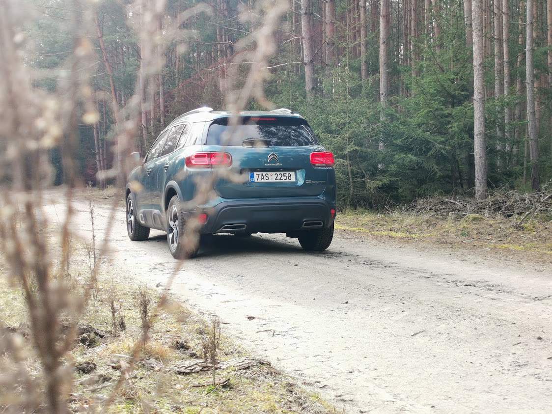 O motor tu ale vlastně moc nejde, hlavní je totiž podvozek. Citroën tvrdí, že C5 Aircross je nejpohodlnější SUV ve své kategorii, za čež (kromě skutečně podařených sedadel) prý vděčí tlumičům Advanced Comfort s progresivními dorazy. Podle některých jsou tyhle kouzelné tlumiče dokonce tak dobré, že se vyrovnají hydropneumatickému pérování ze starších modelů. Na rovinu se přiznávám, že jsem nejel všemi dostupnými středně velkými SUV a tak nemohu exaktně potvrdit, zda mají v Citroënu pravdu, nebo se jen sebevědomě chvástají, faktem ale je, že C5 Aircross je opravdu hodně pohodlné auto. A to jak ve městě, tak na rozbité okresce a dokonce i na lesní cestě v bývalém vojenském prostoru, kde zbytky asfaltu prorůstá tráva a mladé stromky. Tam právě vznikaly fotky ke článku a byl jsem fakt extrémně překvapený tím, co všechno tenhle srdnatý Citroën odtlumil bez tupých ran do podvozku. Ani náročné disciplíny jako panelová cesta, řada děr za sebou, nebo roleta auto nerozhodí a rozhodně nemám pocit, že by cé pětka jízdou po nepěkných površích nějak výrazně trpěla.