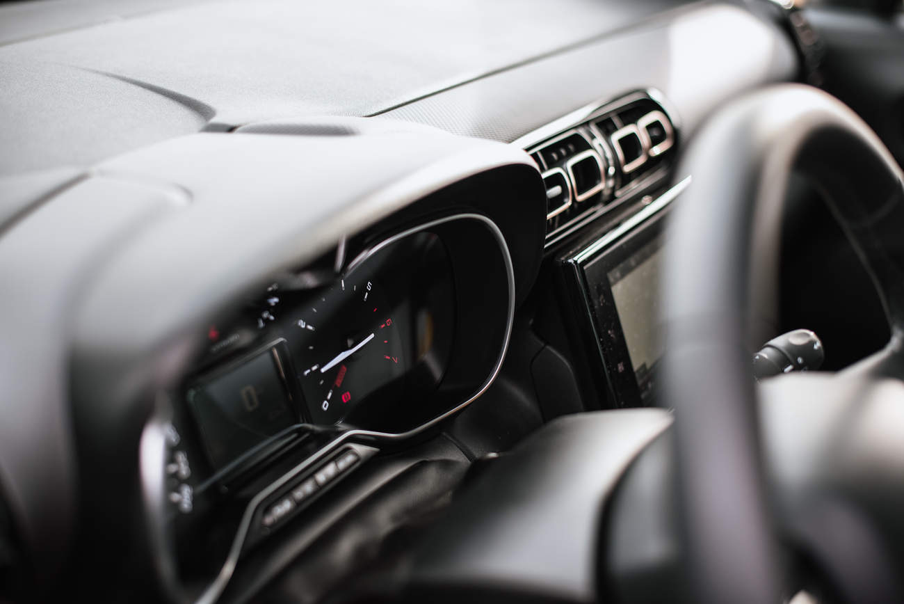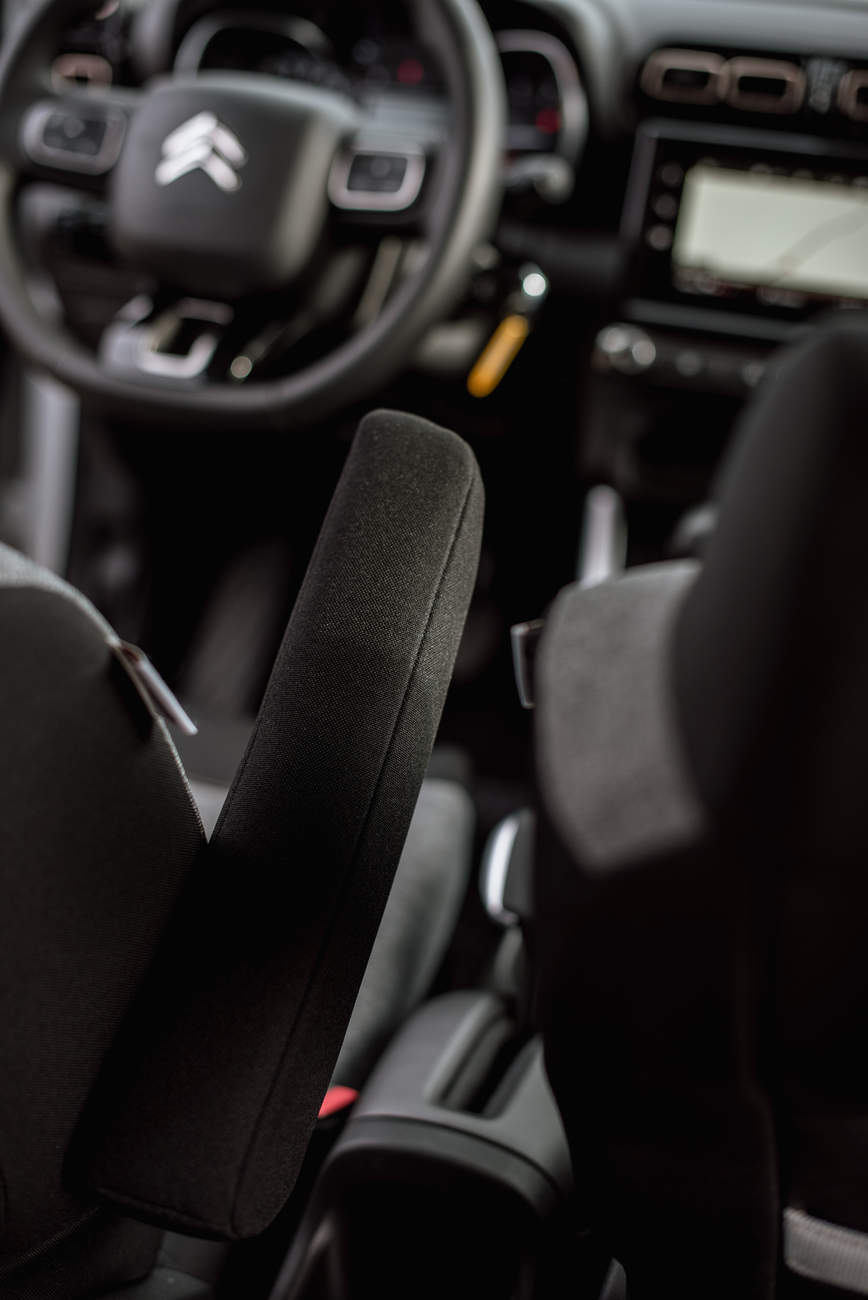 Kromě rozčarování z nutnosti neustále klikat na displeji se toho v interiéru zas až tak moc neděje. Plastové obložení je černé, na druhou stranu ozdobené moderními tvary, trochou chromu a příjemnou látkou. Ta se nachází na plochách, které slouží pro odpočinek loktů při dlouhých cestách. Trochu úsměvně působila loketní opěrka u řidičova sedadla. Představte si libovolný dálkový autobus a loketní opěrku. Jediná věc, která dělí váš loket od dotyku s loktem spolucestujícího. Máte představeno? Tak přesně taková je ta v Citroenu. S tím rozdílem, že jí máte jen pro sebe.