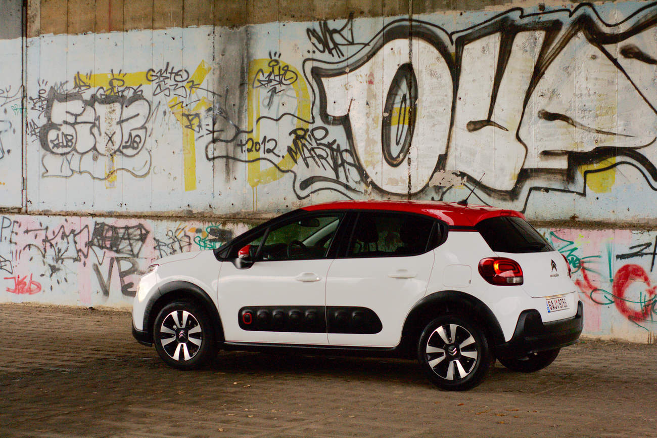 Otázkou tedy je – funguje to také jako opravdový Citroën? O tom už se trochu rozepsal Honza ve svém jarním testu dieselové verze. Prý to bylo dobré a veselé. Ale naftový motor v supermini, které lidé typicky používají na krátké cesty? Není to trochu divné? Podle nás je. A o to víc v případě C3, která se, na rozdíl od jiných zástupců této třídy, jako jsou Fabia či Polo, nesnaží tvářit dospěle ale hrdě se hlásí k tomu, že je to hravé malé autíčko. Takže jsme se rozhodli vyzkoušet i benzínové varianty.