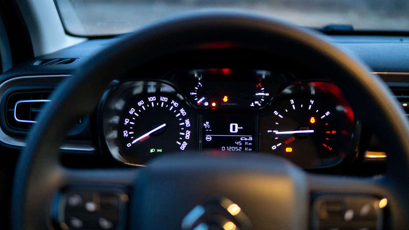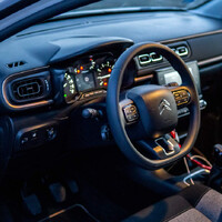 V mých očích má být malý Citroën levný, pohodlný, nezáludný a veselý. C3 se svou vizáží bubliny, ozvláštněná měděnými proužky, je sice jedním z povedenějších hatchbacků, ale ona hravost se objevuje v podstatě až v interiéru. Otevřete dveře a vidíte veselé šedivé židličky a měděnými proužky ozvláštněnou jednoduchou palubní desku s chromovanýma kravinkama. Usadíte se do měkkého molitanu pokrytého na omak příjemnou látkou a zjišťujete, že vše je vyrobeno velmi levně a na kvalitu plastů se tu nehraje, ale hned jakmile nastartujete ubrblaný tříváleček si uvědomíte, že jste sice ušetřili na plastech dveří, ale máte dotykovou obrazovku, která možná není nijak extra zajímavá a inovativní, ale funguje a má Apple Car Play a tak. Volant má jen nezanedbatelné zploštění dole a "designovou linku" kolem dokola, je upřímně plastikový a do ruky tak akorát. A před ním jsou ručičky a segmentový display. A je hezčí, než jakýkoli dražší, ale ne úplně drahý barevný nesmysl. Barvy já nepotřebuju, todle mi neva a je to milé, protože si to na nic nehraje. Chromované kravinky si hrajou se sluncem a jsou k ničemu, ale jsou tu a dělaj mi radost a celé je to tu jak v pokojíčku.