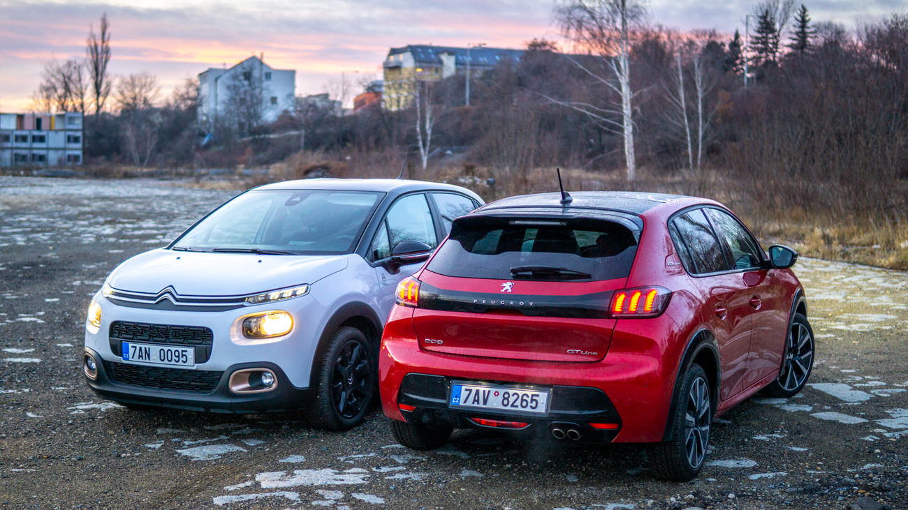 Došli jsme totiž k tomu, že ony dva automobily snad ani nemohou být odlišnější. Kupříkladu C3 má krásný měkký a poddajný podvozek a Peugeot je červený. Předně mi ale dovolte, abych vyjádřil svoje pocity z designu. Tam, kde je C3 bezradná a pomáhá si krásnými detaily jako je oproužkovaný prolis na střeše je Peugeot hezký, prďácký, nebo obojí. Z exterieru C3 na mne trošku sálá bezradnost, u Peugeotu je vidět, že na nové předpisy si designéři už zvykli. To, jak se Kubovi nelíbí záď Peugeotu, tak si já myslím, že je skvělá. Má kšilt, má zatmavený světla, má výfuky a je celá taková "tady by to mohlo pokračovat ale nepokračuje, protože je to sportovní". Zato C3 se svou barokní prdelkou smutně stojí v koutě a posmrkává nad množstvím milimetrů, které se rozkládají mezi krajem auta a zapadlými koly…