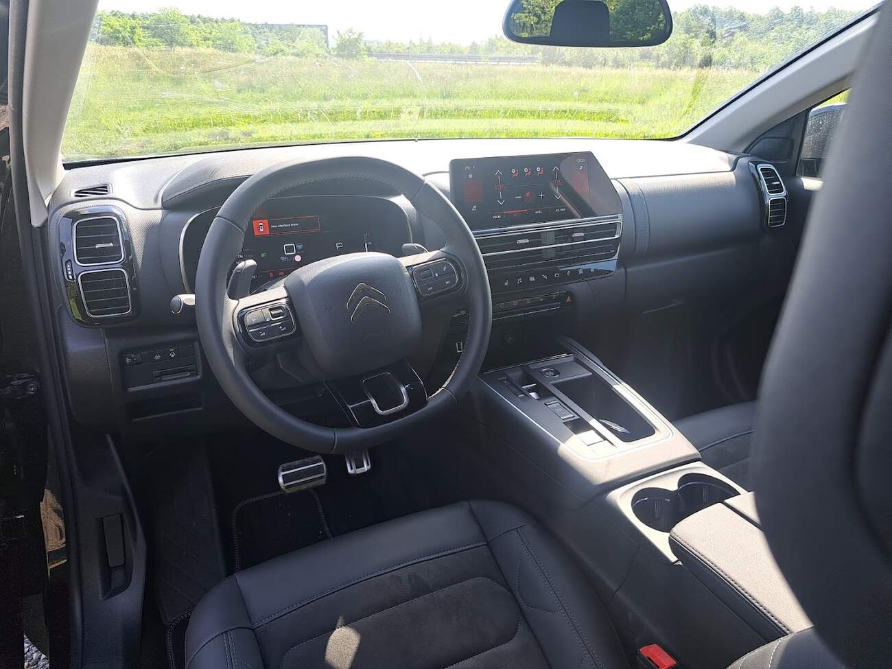 Ještě si rychle odbydeme interiér – zůstala tu skvělá molitanová křesílka, v rámci vysokého výbavového stupně ale nejsou potažena mojí oblíbenou Citroení “svetrovitou” látkou, ale kombinací ekokůže a jakoby-alcantary. Nevypadá to zle, nesedí se na tom špatně, ale ten levnější “svetr” je za mě možná méně luxusní, ale na sezení o kousek lepší, protože lépe “dýchá” a tak se na něm nepotí záda ani v hodně teplých dnech.
