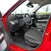 Přes poměrně mnoho pozitiv se ale najdou drobnosti, se kterými si inženýři mohli poradit lépe – třeba upozornění na zapnutý airbag spolujezdce svítí opravdu pronikavým světlem, které v noci dost vadí. Také přední sedadla mají poměrně zvláštní tvarování, kdy mi pozadí zapadlo do měkké části, ale stehna zvedala část tvrdší. Prostřední výdechy ventilace jsou velmi nízko a pravý loket tak bude neustále zmrzlý (v tomhle ale Citroën v dnešním světě není zdaleka sám). Upozornění na překročení rychlosti je otravné, naštěstí je lehké jej vypnout dlouhým stiskem tlačítka vlevo pod volantem. Použité materiály jsou opravdu ty nejzákladnější, co si lze představit, i když na druhou stranu působí docela bytelně. Celkově je interiér velmi jednoduchý a tlak na cenu je cítit, přesto mě to nijak neuráží a vnitřek vozu považuji za jeho silnou stránku, když si uvědomím, že většina reálných aut na silnici bude stát pod půl milionu (spalovací varianty). V elektrické verzi mi ale chybí jakákoli zmínka právě o elektrické části – proč nemůžu vidět, jakou rychlostí se auto nabíjí? Proč nemůžu vidět ukazatel spotřeby? Opravdu tam žádný není, ani aktuální, ani dlouhodobé. Konstruktéři přece museli vědět, že tohle bude majitelům chybět.