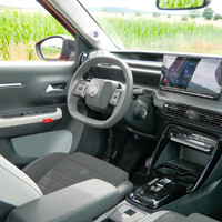 Hlavní dominantou jednoduše řešeného interiéru je ale samozřejmě středový displej. Informace o voze v něm nenajdete a slouží výhradně pro přehrávání hudby, spojení s telefonem a navigaci. Má pěknou hlavní obrazovku, kde je vše potřebné hezky pohromadě. Kvalitou zobrazení nebo rychlostí odezvy sice neohromí, ale svůj účel plní dobře. Klimatizace je pak ovládána samostatným panelem a umí skvěle chladit, s topením je to pak, možná v rámci úspor energie, o poznání horší a i nastavených 26 stupňů znamená mírně chladný vánek. Zajímavostí je jistě i poměrně malý volant, ne nepodobný těm, které už léta používají Peugeoty – spíš zaoblený obdélník. Jenže když skrz něj nemusím koukat na budíky, vlastně mi nevadí a docela se mi líbil.