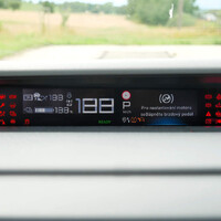 Co mě vyloženě nadchlo, byl ale přístrojový štít. Ten je schovaný pod hranou čelního okna, daleko před řidičem. Údaje zobrazuje sytě bílé na černém podkladu a čitelnost je výborná i na slunci. Hlavně však díky svému umístění může sloužit i jako náhrada head-up displeje, jen je škoda, jak málo informací umí zobrazit. Přesto by si z toho i mnoho o dost dražších aut mohlo vzít příklad.