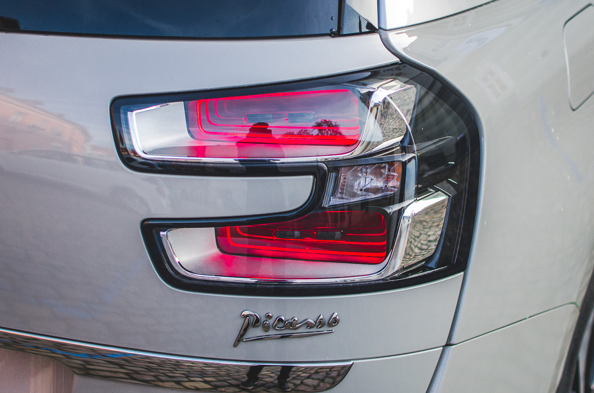 Co se designu týče, Citroën nikdy moc nedbal dobových módních trendů. Vždycky si jel po svém. Jeho zákazníci to dokázali ocenit. Až na pár výjimek, téměř pokaždé jasně poznáte příslušnost daného modelu k pařížské automobilce. A nové C4 Picasso není jiné. Jeho vzhled je nápaditý, extravagantní a rozhodně si jej nespletete. Je to Citroën na první pohled. Doménou jsou přední dělené světlomety, které mohou na první pohled a v zhasnutém stavu působit trochu nesourodě. Jakmile nastartujete a rozsvítíte světlomety, všechna disharmonie okamžitě zmizí. Najednou to, jako mávnutím kouzelného proutku, funguje. Denní svícení, zakomponované do znaku automobilky vypadá opravdu dobře. Dalším netradičním prvkem je rozdělený A sloupek, který přispívá ke skvělému výhledu šikmo vpřed, tohle se vážně povedlo. Z bočního pohledu se nedají očekávat žádné designové výstřelky, přece jenom se nacházíme v kategorii MPV a zde má přednost funkce před formou. Zaujme snad jenom jinak lakovaný C sloupek, jehož kontury navazují na A sloupek a střešní ližiny. Dominantou zádi jsou ohromné páté dveře s dvojitými lampami, které tvoří jedno velké C. Moc hezká je jejich 3D grafika. Přestože základní tvar Grand Picassa nikterak převratný není, dokázali francouzští kreslíři oživit jeho vzhled zajímavými detaily a jako celek to vypadá velmi vkusně. A to je hlavní. Osobně můžu říct, že krátká verze se mi líbí ještě o něco více a je taková uhlazenější. Pokud se však rozhodnete pro Grand, určitě se za jeho vzhled nebudete stydět.