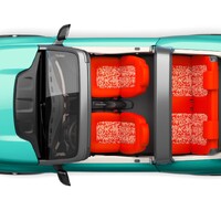 Uvolněně plážový vzhled zevnějšku doplňují střešní rámy, mezi nimiž jsou napnuty odnímatelné textilní panely. Interiér v červené nebo béžové barvě má sklápěcí zadní lavici a je čalouněn voděodolnou látkou, které nevadí ani mokré plavky.