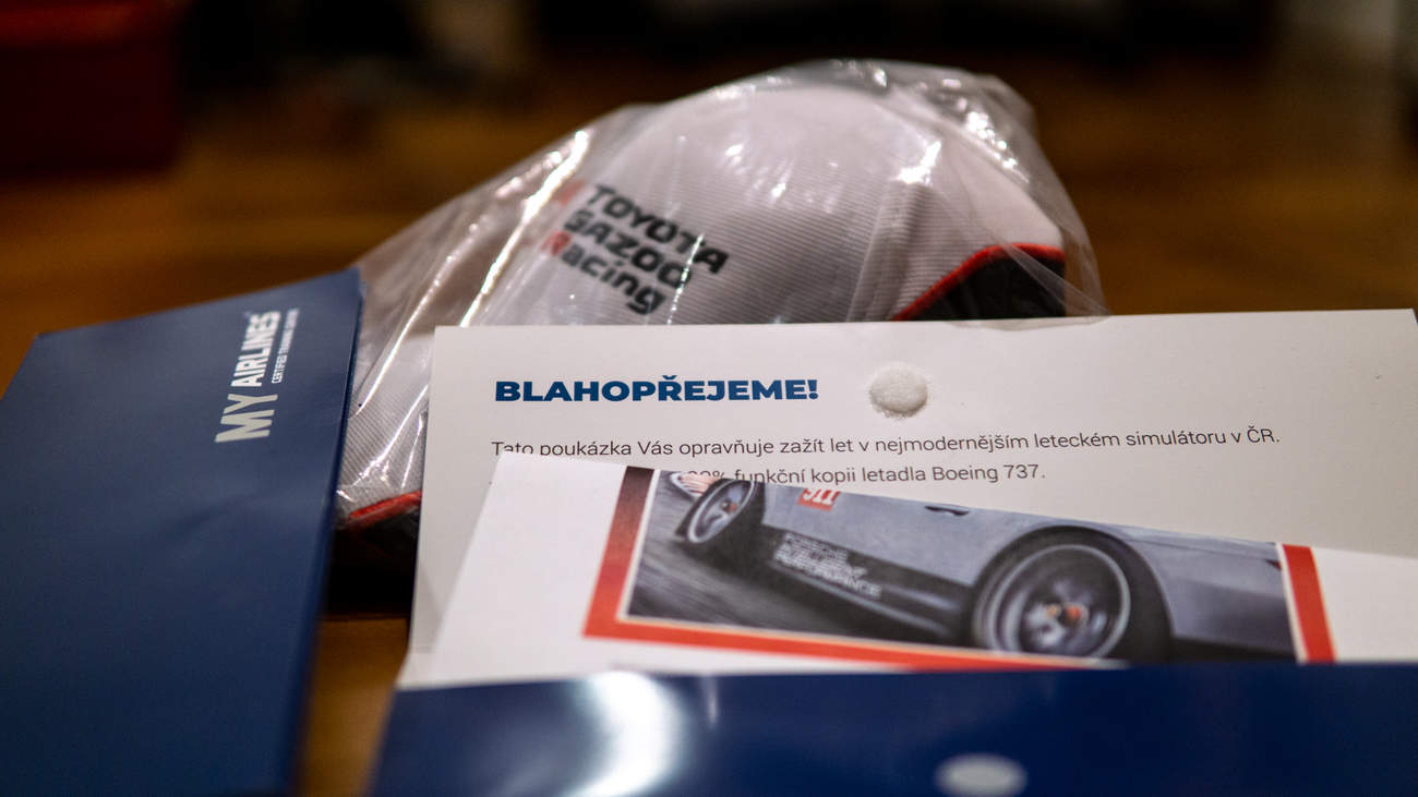 A co se soutěže týče, prosím aby se mi soukromou zprávou ozvali Pochtli a Ronoath, protože tu maj lístky na simulátor a pak Bitner, který tady má slušivou čepku Gazoo Racing.