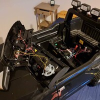 Milou rodinnou povinností bylo letos na Vánoce pořízení vůbec prvního elektromobilu, který jsem si kdy za vlastní peníze koupil. Teda ne sobě, já bych se do něj přeci jen nevešel. Protože ale vnější podmínky zatím příliš nepřejí drandění po zahradě, zabývám se, jak je vidět na fotce výše, rozličným tuningem. Původní olověné baterie nahradily silnější články, které zvýšily dojezd na zhruba 9 kilometrů a maximálku někam k sedmi km/h a výměna slabých žároviček za silnější LEDky zase zlepšila použitelnost vozu za snížené viditelnosti. Do budoucna to vidím ještě na upgrade pneumatik a už se moc těším na letní offroadové výlety do lesů a polí.