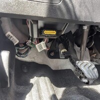 Pro mě zdaleka největší mrzutost se ale nachází u řidičovy levé nohy. Hned vedle spojkového pedálu, nad takovou tou odpočívací ploškou, se nachází kus plastu s OBD konektorem, do kterého zezadu vedou silné svazky kabelů. A tato soustava je bohužel umístěna tak nešikovně, že jsem o ní neustále škrtal botou při přešlapávání ze spojky. V sandálích to ještě šlo, to jsem většinou prostrčil nohu těsně pod plastem, ale uzavřené pracovní boty velikosti 45 v Joggeru znamenají nemožnost plynule přešlápnout ze spojky do boku na “odpočívadlo”. Musíte zasunout nohu směrem k sedáku, pak až ji posunout doleva a pak vystrčit dopředu na dedikované místo.