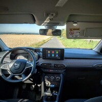 Vezměme to pěkně odpředu. Máme tu sice displej infotainmentu, který umí bezdrátový CarPlay a Android Auto, ale jeho rozlišení a barvy jsou fakt nic moc a rychlost odezvy taky neuchvátí. Kdyby tu byla díra na dvoudinové rádio, stačilo by sem koupit nějaký aftermarket za desítku a fungovalo by to celé asi o dost lépe. Vedle něj je stojánek na telefon. Nápad je to dobrý, jenže zpracování zase trochu pokulhává. Celý plastový segment je dost volný a má vůli, takže telefon v něm je nakřivo. Navíc můj 6,4 palcový přístroj už se do něj skoro nevešel, musel jsem vytahovat ramínko držáku úplně nadoraz. Při pohledu z místa řidiče mi navíc prostřední třetinu displeje zakrýval volant. Pro menší telefony to bude asi fajn, ale zas nesmí mít vypínací tlačítka zboku příliš uprostřed, jinak je bude držák při uchycení mačkat.