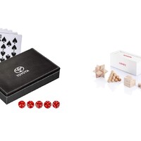 sada kostek a pokerových karet 876 Kč, sada tří hlavolamů 471 Kč