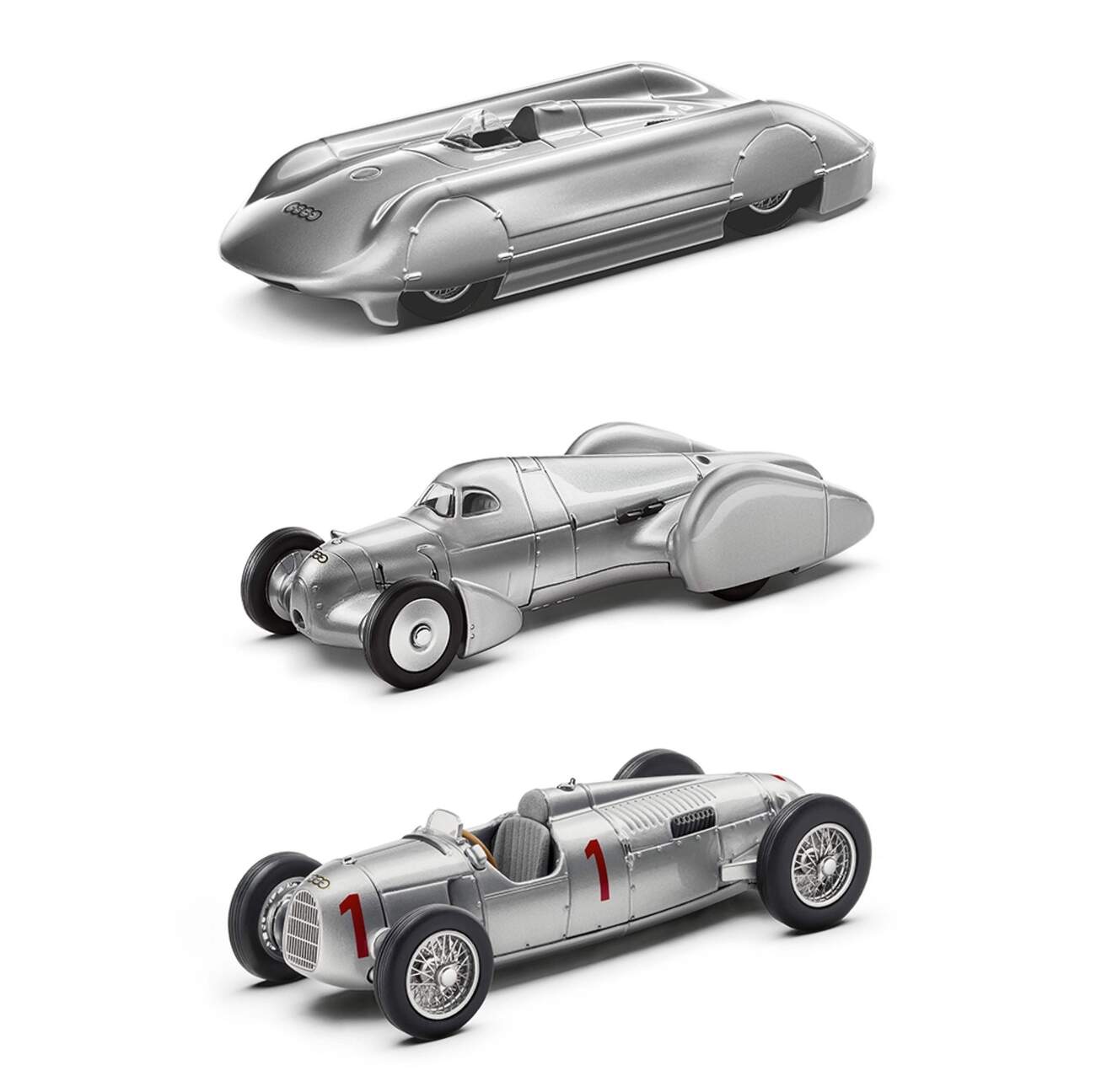 Ještě jednou autíčka, tentokrát jako nepřehlédnutelný designový doplněk bytu nebo kanceláře. Stříbrné modely slavných závodních vozů Auto Union ze třicátých let připomenou majitelům Audi vznešené kořeny jejich přepravníků a všem nadšeným automobilistům časy, kdy řízení nebylo nic pro slečinky z cukru. boutique.audi.cz