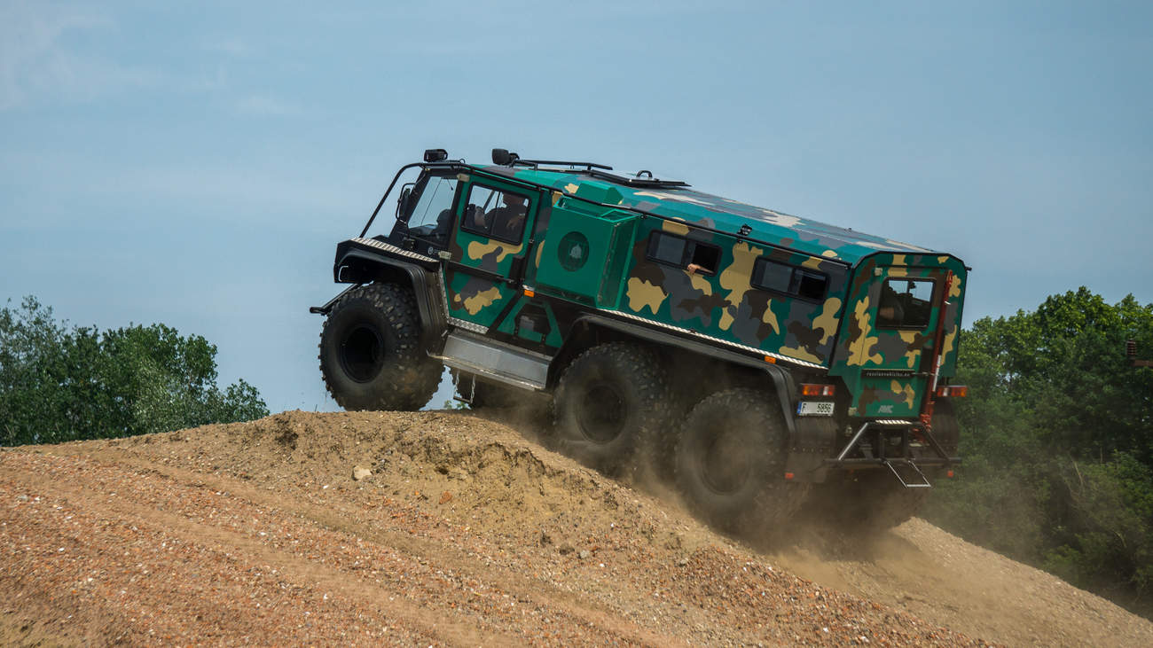 Na ploše stály úplně nové exempláře a tak jsem se alespoň pustil do zkoumání, kam se vývoj těchto úctyhodných terénních monster za posledních pár desetiletí posunul. Nákladní vozy již dávno nepohání užrané jednotky YaMZ (anglický přepis ЯМЗ), nýbrž naftové motory Cummins spřažené s převodovkami ZF a na palivové soustavě se skví nápisy Bosch. Západní zákazníci prý lépe slyší na západní značky a už kvůli servisu a spolehlivosti pohání ruské náklaďáky americká a německá technologie. Všechno to poctivé železo je však ruské a tak jsem se mohl kochat pohledem na ověřené odolné rámy, diferenciály a nápravy. KamAZ se na našem trhu rozhodl bojovat atraktivní cenou, spolehlivostí a nabídkou terénních podvozků na úkor pohodlí řidiče a přítomnosti nejnovějších technologií na palubě. Vzhledem k atraktivním číslům užitečné hmotnosti, cenovek a spotřeby věřím, že se s ruskou technikou na našich silnicích začneme setkávat častěji, především ve stavebnictví a u záchranných sborů.