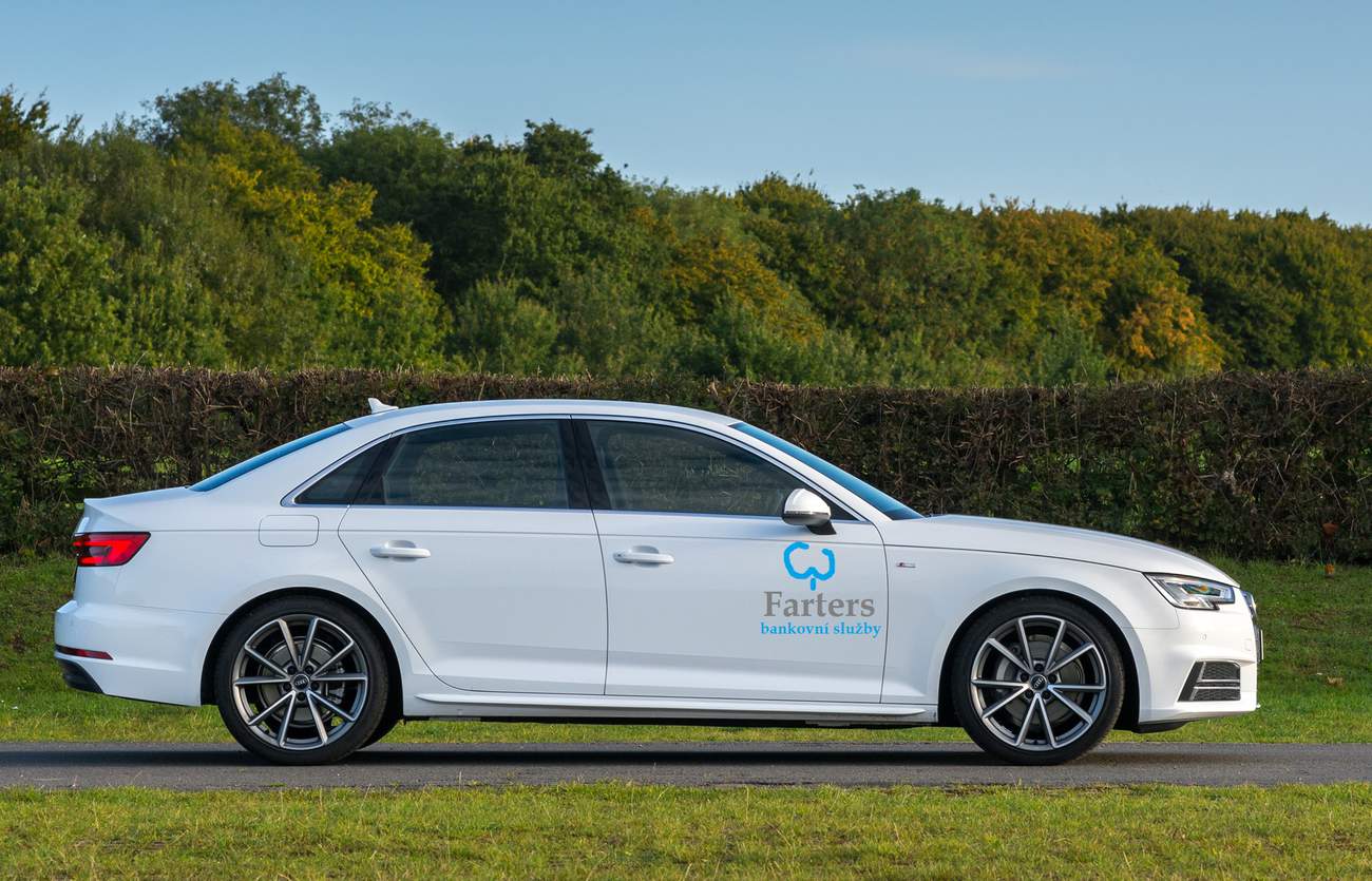 Nic nedokáže degradovat elegantní limuzínu Audi tak, jako logo finanční poradenské společnosti. Jasně, my víme – prodej nevýhodných finančních produktů celému širokému příbuzenstvu není práce, ale spíše poslání a na limuzínu z Ingolstadtu první splátku operativního leasingu jste si vydělali jen díky své dobrosrdečnosti a lásce k financím a lidem. Vlastně všem jen pomáháte a nebýt produktů finančního trhu, většina lidí bydlí v chatrčích z vlněného plechu a jí hlínu a kameny.