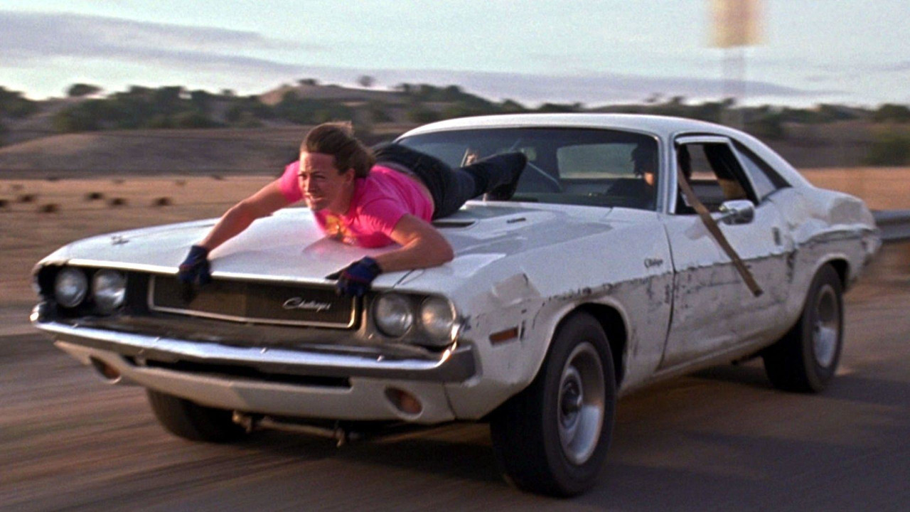Ve filmu jsou zásadní hlavně dvě věci. Jednak je to vele-epický crash, při kterém Kurt Russell zabije svým kaskadérským „Death Proof“ (v doslovném překladu "smrtivzdorným") Chevroletem Nova partu rozjařených holek, jednak ještě epičtější honička, při kterém Kurt Dodgem Charger nahání jinou partu holek jedoucí v Challengeru. A právě tenhle bílý Challenger, který je „jako ten z Vanishing Point“ a kterému po kapotě za jízdy lezla Zoe Bell, je právě teď na prodej na Ebay.