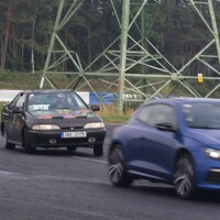 Zjištění dne ze Sosnové: Větší okruh stojí víc peněz, ale stojí to za to. Betonové panely, sloužící coby úniková zóna na Czech Ringu, očividně odrazují ty z vás, kteří dáváte přednost pohledu na trať před sebou bočním okénkem vozu. A Driving Day na Sosnové ukázal, že takových je velká část. Dokonce i některé předokolky zdatně bokovaly, ať už šlo o Focus II RS, o PlechCupovou Mazdu 323 (která dokonce bokem dala jedno z nejlepších kol), nebo o Hyundai Scoupe Jiřího Dejmka.