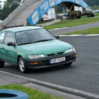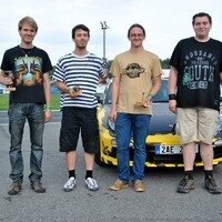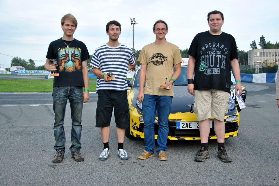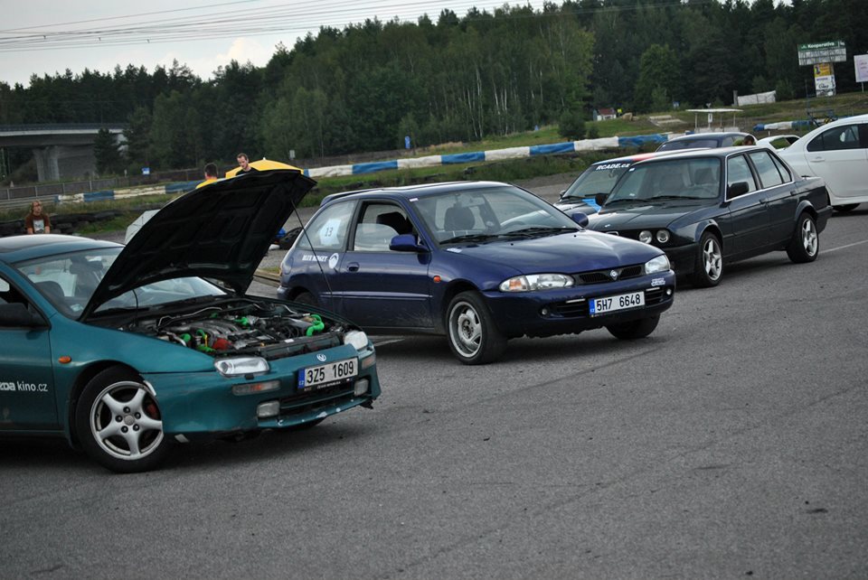 A pak je tady Plečkap. S přihlédnutím k tomu, že naše závodní Kolora měla ještě ve čtvrtek odpoledne sundanou hlavu se zalomeným šroubem, vše dopadlo, jak nejlíp mohlo. Nejen že, to celé trápení přežila téměř bez úhony (po skoku přes pneumatiky nám odpadnul docela velký kus vyrezlého prahu) ale navíc byla natolik rychlá, že to stačilo na vítězství. Za tím se skrývá jediná věc. Slicky. Kolora byla ve většině parametrů horší než konkurence, slabý motor, šíleně dlouhý převod řízení, obyčejný podvozek. Jediný parametr, který ostatní převyšoval, byly právě pneumatiky. Ty fungovaly neuvěřitelným způsobem, stačilo jet jak bezmozek. Závěrem bych ještě smeknul před jízdou, jakou předváděl Martin Klein ve své korozí značně odlehčené Mazdě 323f. Když jsem dojel své 3 kola plečkapu, bylo mi poměrně suše oznámeno, že jsem nejrychlejší. Ale když dojel Martin, vítal jej potlesk. A vzhledem k velmi rozevláté a pro oko diváka zábavné jízdě byl zcela zasloužený. A právě tak by se měl Plečkap jezdit – na krev, se stylem a co možná nejvíc šíleně.