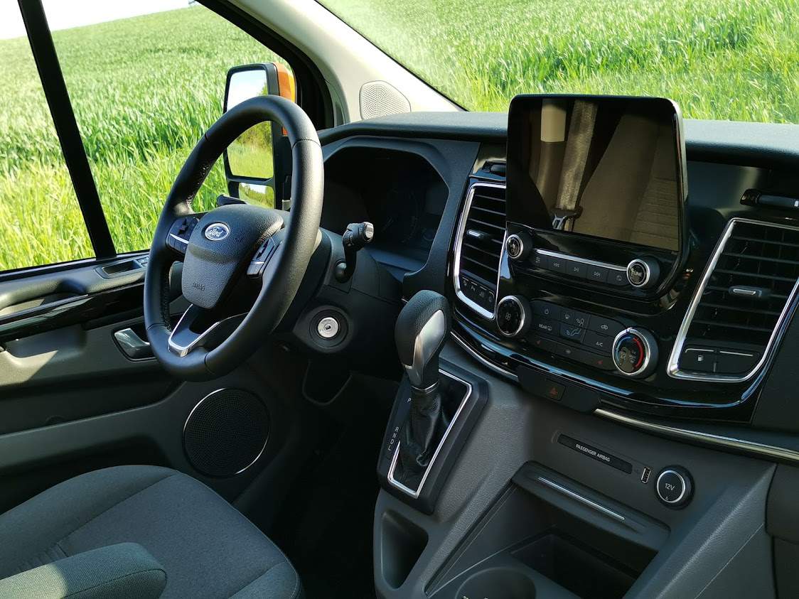 Pracoviště řidiče je ergonomicky dobře zvládnuté, je tu spousta odkladacích prostorů a schránek, sedí se tu příjemně a moc se mi líbí přehledná velká dodávková dvoudílná zrcátka. Co se týče digitální výbavy, je sice poznat její poměrně letitý základ, takže rozlišením, grafikou, nebo velikostí displeje mezi budíky už velký dojem neudělá, ale vše funguje spolehlivě, svižně a intuitivně. Je mi docela sympatické, že se Ford příliš nesnaží maskovat svůj užitkový původ nějakým přehnaným pozlátkem, ale prostě funguje a na nic moc si nehraje.