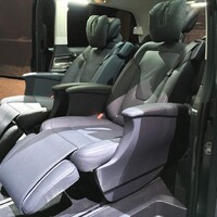Zvláštní zmínku však zasluhuje další položka příplatkové výbavy interiéru. Tou je možnost nahradit druhou řadu sedaček za dvojici vpravdě luxusních křesel nejvíce připomínajích ta, která potkáte v první třídě letadel nebo soukromých tryskáčích. Elektricky polohovatelná sedadla s nastavitelnou podporou lýtek jsou vybavena masážní funkcí, chlazením i vyhříváním. Hlavovou opěrku doplňuje měkkoučký polštářek. Již tak velmi pohodlný šestimístný vůz nabídne další možnosti jak komfort na palubě ještě vylepšit. K tomu dopomůže také tišší jízda, o kterou se postará nový motor.