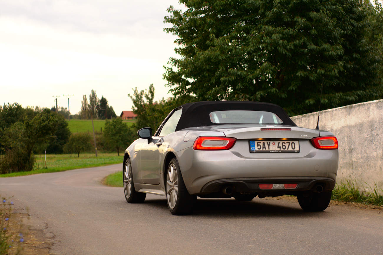 Třetí a další zjištění, v náhodném sledu: Když nastartujete, nedočkáte se italského ryku, ale trochu utlumeného hučení turbomotoru. Na jednu stranu trochu škoda, na druhou stranu brzy zjistíte, že v každodenním použití je vlastně docela příjemné, že o sobě motor nedává tolik vědět. S tím souvisí i jeho charakter. Evropské verzi Spideru (americká má 160 koní místo 140 a ostřejší výkonovou špičku, což z ní nejspíše udělá o řidičsky o dost zajímavější auto) mnoho lidí vyčítá trochu tupý projev motoru a plochou křivku výkonu. Jenomže to jsou věci, kterých si všimnete zejména při okreskovém řádění – zkuste používat 124 Spider v pražském provozu, na dálnici nebo při svižném tempu po státovkách a zjistíte, že je v reálném světě mnohem rychlejší než Miata s dvoulitrem, o patnáctistovce nemluvě.