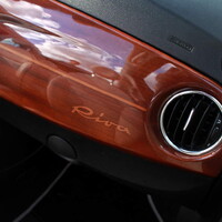Ovšem to neznamená, že by tu bylo něco “jen jako”. Riva dodala Fiatu obložení palubní desky z toho nejkrásnějšího kusu mahagonu, jaký snad v autě můžete mít. Jop, tohle není žádná imitace, v tomto fiátku je opravdu metrový kus lakovaného leštěného mahagonu s drobnou javorovou intarzí.