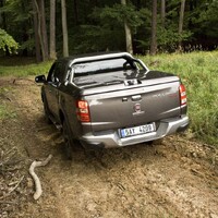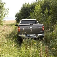 A když jsem opustila město, po chvíli se dostavilo překvapivé zjištění, že jízda v tomhle pickupu je… Pohodlná? Úsporná? Čert to vem – zábavná! Zadní náprava sedící na listových perech se sice neposedně vrtí, ale auto neztrácí směr ani jistotu. Podvozek je relativně měkký a houpavý, přitom se do zatáček stáčí ochotněji než kdejaký hatch (naklání se samozřejmě o dost víc :) a zadní náhon s terénními pneumatikami jeví lehké sklony k přetáčivosti. Zatímco ve měste jsem měla dojem, že je motor o 133 kW maličko líný a těžkopádný, venku jsem musela názor přehodnotit. Člověk se jen nesmí nechat odradit jeho agrárním projevem a musí mu pořádně šlápnout na krk. Najednou to jede jako splašený traktor…