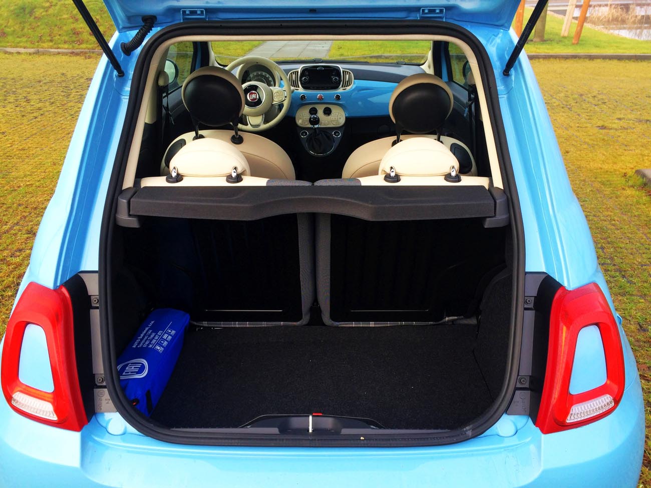 Co by to bylo za recenzi interiéru, kdyby nebyl alespoň okrajově zmíněn zavazadlový prostor. Můžete zůstat klidní, pětistovka zvládne i pořádný nákup v podobě plného vozíku z Tesca. Možná to bude fungovat i třeba v Globusu, nebo Lidlu, ale největší nákup jsem zatím udělal právě v Tescu.