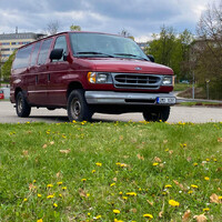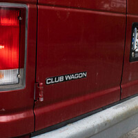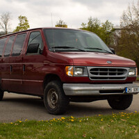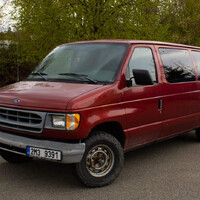 Teď už ale k věci. Červená a notně obouchaná dodávka je Ford (Econoline) Club Wagon z roku 1997. Někteří se teď možná pozastaví. Kde je označení podvozku? Je to půltunka E-150? Nebo třičtvrtětunka E-250? Toto označení se ale používá jen u nákladních verzí, u osobních se mnohdy vynechává i název Econoline a je to prostě Ford Club Wagon, ať jde o krátkou verzi s (až) osmi místy, nebo prodlouženou verzi, co pojme až 15 lidí, i když se od sebe tyto verze liší. Tato verze je krátká (byť se to nezdá), která má jen osm míst.