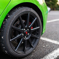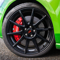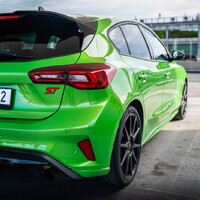 Copak obsahuje naše „Sada ST pro závodní trať”? Stavitelný podvozek od KW, velké přední čtyřpístkové brzdy Brembo (prý z Machu E-GT), kovaná lehká kola obutá do pneumatik Pirelli P-Zero Corsa. Motor z Mustangu, brzdy z elektrického Mustangu a do toho manuální převodovka. Trochu jako kdyby pejsek a kočička vařili dort, tohle snad přece nemůže fungovat! Dále nějaké méně podstatné drobnosti vizuálního charakteru – černě lakovaná střecha, zrcátka, zadní spoiler.