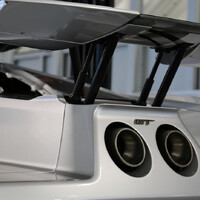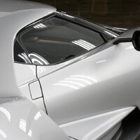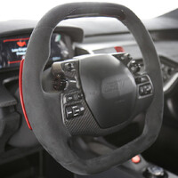 Interiér přišel o zbytečnosti v podobě infotainmentu, reproduktorů, klimatizace a dalších věcí a sedadla i volant oblékají Alcantaru. Skleněná přepážka za řidičem je z tenčího skla Gorilla Glass, stejně jako čelní okno. Kdybyste si ani pro tohle všechno nepřišli dostatečně speciální, jsou tu ještě červeně eloxovaná pádla řazení a plaketa na palubní desce.