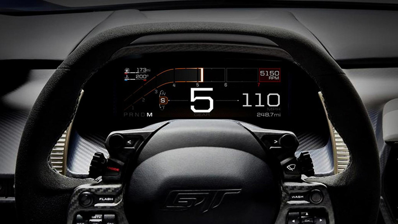 Díky vychytávkám jakými jsou karbonová kola, či tenké čelní sklo Gorilla Glass, udržela se suchá hmotnost GT na střízlivých 1385 kilogramech. Zmíněné hodnoty akcelerace sice nevíme, ale na druhou stranu víme, že maximálka činí 347 km/h. Z nového GT se tak rázem stává nejrychlejší produkční auto, které kdy Ford vyrobil.