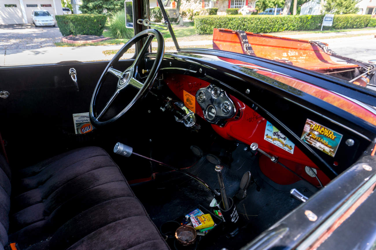 Připadal jsem si jako ve filmu. Posadil jsem se na místo spolujezdce a vyrazili jsme na výlet prosluněným New Jersey. Při pohledu přes kapotu na obrovskou kukuřici, dlouhé příjezdové cesty, dřevěné domy a žluté středové čáry cest lemovaných skvěle posečeným trávníkem jsem tak nějak zasněně začal přemýšlet, jak to tady muselo asi dříve vypadat. "No stejně jako teď, akorát míň lidí a víc pohody", děl John. A fordka nám tuhle představu pomáhala ze všech sil přiblížit. Byl jsem překvapený, jak je auto pohodlné. Odpružené sedačky, relativně měkký podvozek s hydraulickými tlumiči a vysokozdvihový motor, který není třeba příliš vytáčet znamenají, že člověk se veze v překvapivém pohodlí. Vše samozřejmě berte s rezervou, konkurencí moderního mercedesu staré Áčko není, ale kdo by čekal kostitřas ve kterém neuslyší vlastního slova, hodně by se mýlil.