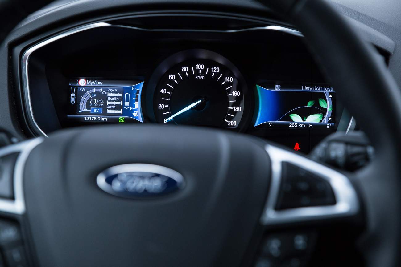 Jak to ale funguje? Ačkoli je to jednoduchá otázka, odpověď na ni není lehká. Pokud nemáte nějaké srovnání s jinými hybridy, zejména těmi od Toyoty, pak nejspíš nebudete mít námitek. Jenže… V průběhu testu Mondea se mi do ruky dostala i Toyota Camry, díky které se některé nedostatky Mondea (a zároveň také nedostatky Camry) projevily mnohem znatelněji. Pohon Mondea prostě neumí být tak kultivovaný jako ten v Camry. Principiálně jde o podobné pohony, ovšem Mondeo se při sešlápnutí plynu mnohem více rozhučí a při jízdě mimo město je mnohem více poznat, že si řídící systém auta úplně neví rady. Je čas jet na benzín? Nebo na elektřinu? Sakra, co dělat? Tuhle věc by možná mohlo spravit dlouhodobé používání, kdy by si auto navyklo na zacházení jednoho člověka, ale v kontrastu s Camry, která se sama od sebe chová nezmateně a svým způsobem samozřejmě, je to špatné.